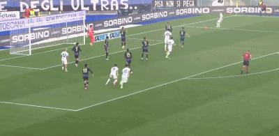 第53分钟,比萨中路射门制造威胁,索默神勇化解